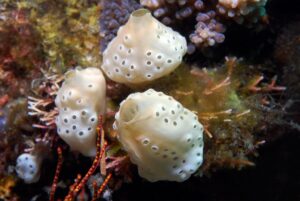 A cluster of Ascidians, a type of sea squirt