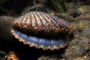 EPEC-05175_sm Peconic Bay Scallop from New York with a multitude of blue eyes California Diver — March 15, 2026