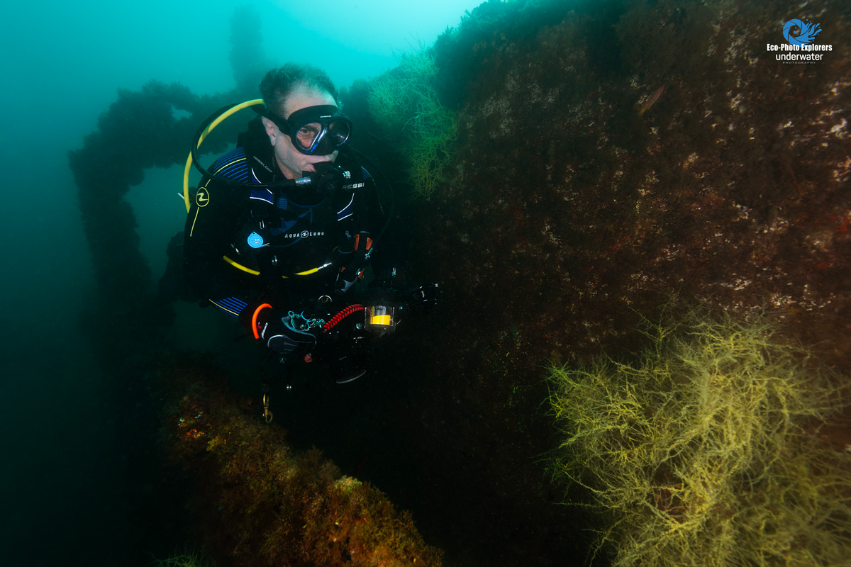 Exploring a shipwreck in the Sea of Cortez shortly after recovering from the surgery