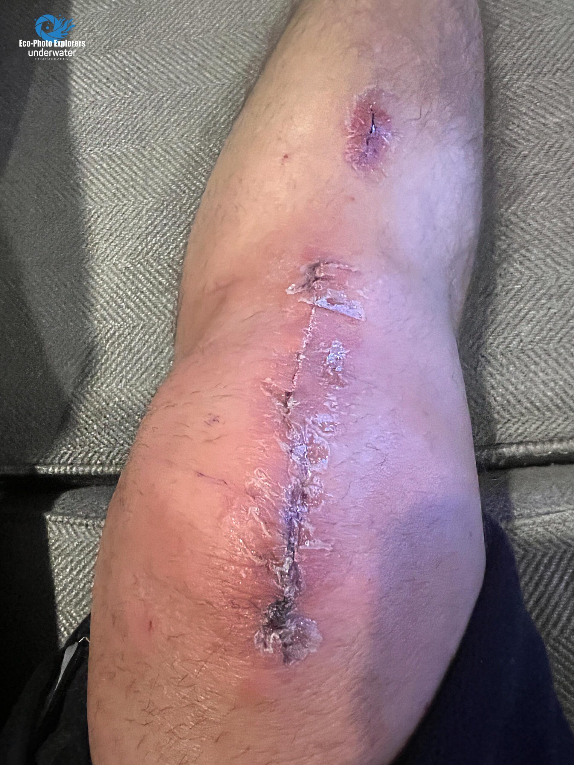 Initially, there was no pain, just a feeling of tightness. A large dressing had been applied and the wound was sealed with surgical glue.