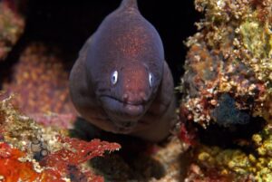CW2C_4414_sm The White-Eyed Moray from the Philippines’ Apo Reef is mostly a solitary eel California Diver — January 14, 2026