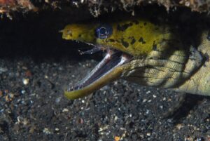 MS1C_0255_sm This Fimbriated Moray is enjoying a dental cleaning from a Cleaner Shrimp California Diver — January 14, 2026